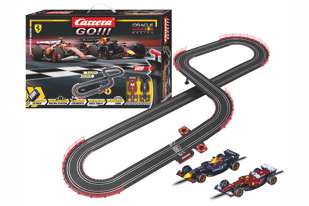 Das Formel 1-Finale ist erledigt, Max Verstappen holt mit seinem Red Bull-Boliden den Sieg. In der WM-Wertung schafft es Lando Norris dank seinem dritten Platz mit dem McLaren am Ende aber doch, Max Verstappen um gerade mal 2 Pünktchen abzuhängen. Für all jene, die das Drehbuch anders schreiben möchten und vielleicht sogar Lewis Hamilton auf Ferrari oder George Russel auf Mercedes vorne sehen wollen, hat Carrera das passende Werkzeug: Verschiedene Formel 1-Sets, mit denen absolute Spannung garantiert ist!