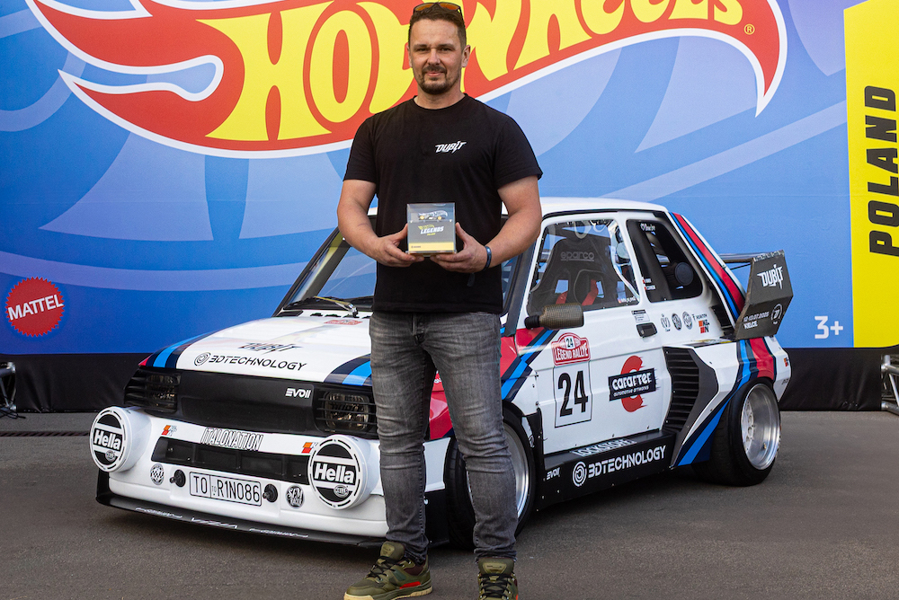 Paweł Czarneckis kleines, aber kraftvolles, mittelmotorsportlich inspiriertes Rallye-Fahrzeug wird als 1:64 Hot Wheels Die-Cast-Modell verewigt und weltweit verkauft.