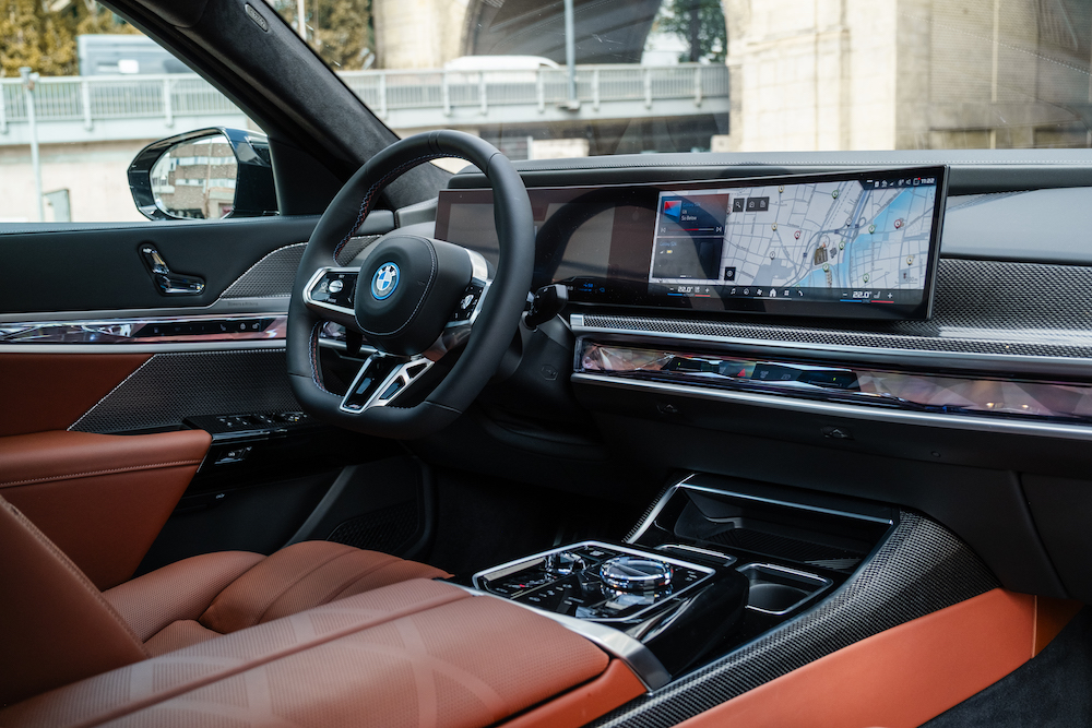 Die eigentliche Show des 7er spielt sich im Innenraum des Münchner Flaggschiffs ab. Steigt man über die automatisch öffnende Tür in diesen ein, wird man direkt von den kristallartigen Dekoreinsätzen begrüßt, die der Ambientebeleuchtung als Bühne dienen. Die Farben und Animationen ändern sich mit den Fahrmodi, können aber auch individuell angepasst werden. Hat man sich im sehr vollen Infotainmentsystem zurecht- gefunden, kann man beispielsweise die Massagefunktion der Sitze aktivieren, um dem Stress, den man durch das Menü-Wirrwarr entwickelt, entgegenzuwirken. Wer es von Haus aus entspannter angehen lassen will, nutzt einfach die überaus zuverlässige Sprachsteuerung, die einem selbst die Tür öffnen kann.