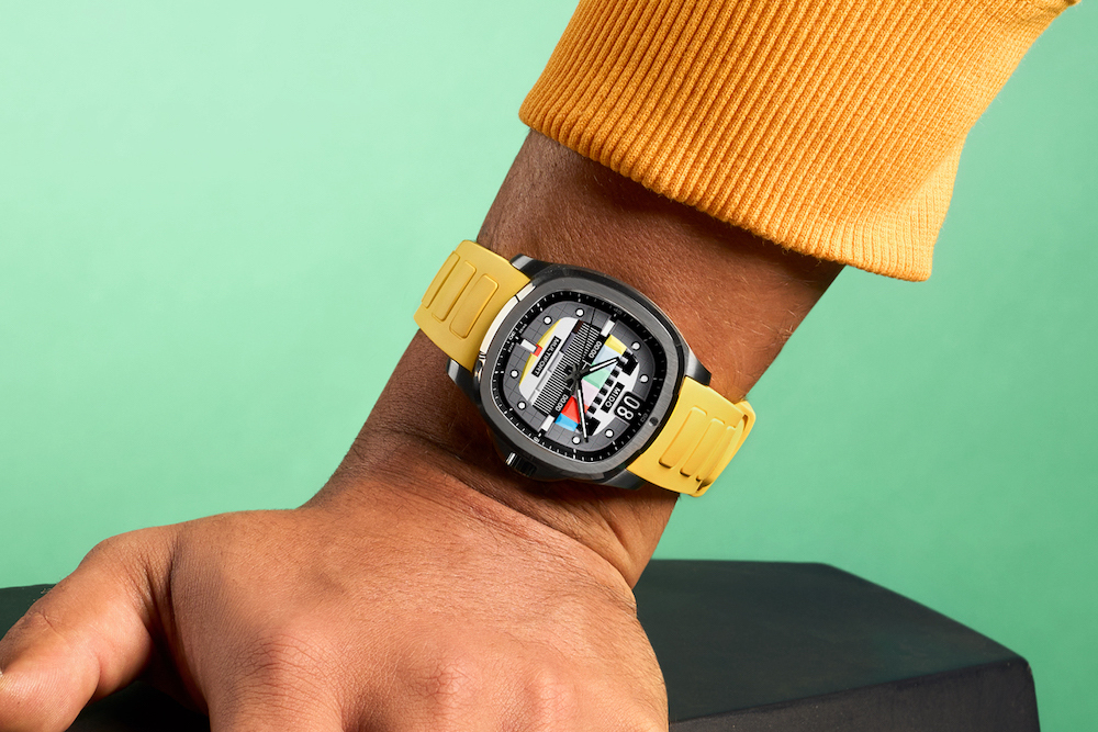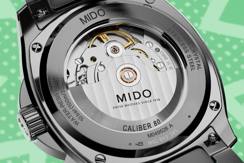 Dieses „Pixelrauschen“, originalgetreu wiedergegeben und Sinnbild einer Generation, die von den lebendigen Farben damaliger Serien begeistert war, wird von einem grauen Rahmen mit vertieften Indizes eingefasst. Bei 12 Uhr befindet sich die charakteristische Großdatumsanzeige von Mido. Die Uhr verkörpert Midos Anspruch, nur die besten Materialien für höchste Zuverlässigkeit zu verwenden. Weißes Super-LumiNova auf den Indizes sowie Stunden- und Minutenzeigern sorgt für perfekte Ablesbarkeit auch bei Nacht. Gehäuse und Armband aus grauem PVD-beschichtetem Edelstahl, erstmals in dieser Kollektion verwendet, erinnern an rohes Metall und verleihen der Uhr einen monochromen Look. Zwei zusätzliche Kautschukarmbänder in leuchtendem Blau und Gelb setzen farbige Akzente. Im Inneren sorgt das Kaliber 80 mit seiner hochmodernen NivachronTM-Spiralfeder für zuverlässige und präzise Leistung mit einer Gangreserve von bis zu 80 Stunden.