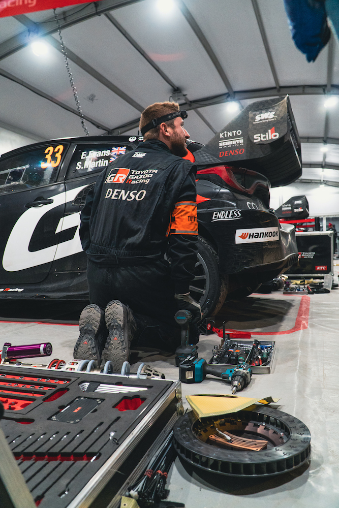 Anschließend werden uns in Passau, der „Homebase“ der Central European Rallye, exklusive Einblicke in den Service Park inklusive Toyota Gazoo Racing Hospitality gewährt. Neben einem köstlichen Abendessen Seite an Seite mit motivierten Mitarbeitern des Gazoo Racing Teams dürfen wir hautnah das Geschehen in der Boxengasse miterleben. Was hier besonders interessant ist: Nur eine bestimmte Anzahl an Mechanikern, mit einer orangenen Schleife ausgestattet, dürfen ab dem Beginn des Services Hand anlegen und stehen zeitlich unter Druck. Für jeden Zeitfehler gibt es eine Strafe.